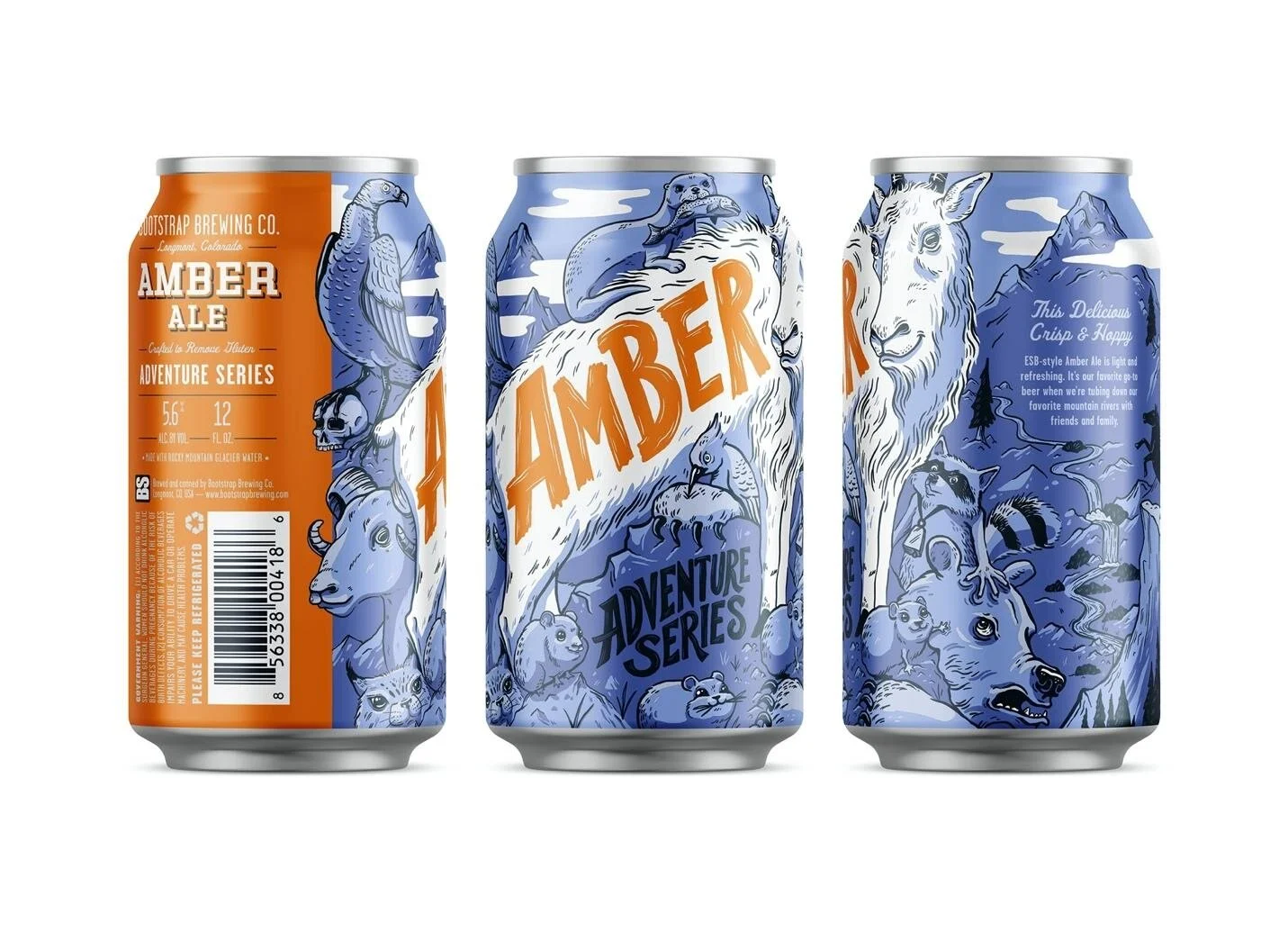In parallel with Bootstrap’s previous can designs, the Adventure Series features a variety of animals indigenous to the Rocky Mountains to reflect the company’s love of outdoor adventures. “Amber pairs so well with tubing down your favorite lazy river,” Kaczeus adds.